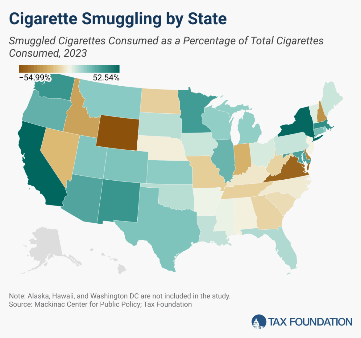 Cigarette smuggling is expensive for states. We estimate that the forgone income from smuggled cigarettes totaled greater than $4 billion in 2023. California misplaced practically $1.5 billion in cigarette excise taxAn excise tax is a tax imposed on a particular good or exercise. Excise taxes are generally levied on cigarettes, alcoholic drinks, soda, gasoline, insurance coverage premiums, amusement actions, and betting, and sometimes make up a comparatively small and unstable portion of state and native and, to a lesser extent, federal tax collections. collections, and New York missed out on greater than $800 million.