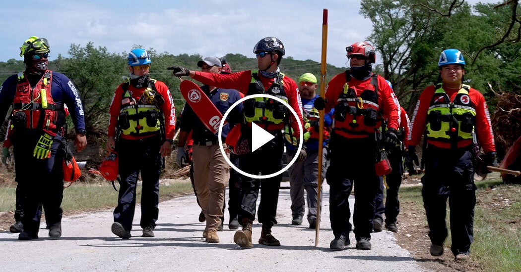 “It’s unhappy. I imply, your head goes via all of the situations which may have occurred. We don’t know in the event that they’re protected or in the event that they’re lacking. So, yeah. Tons goes via while you see one thing like this.” “So we’re going to get this convoy with all of the excavators.” “OK.” “And a bunch of D.P.S. and all the things.” “Oh I see, I see.” “We’re going to go proper down the center of the lane to go to it.” “Good — OK, yeah certain. Paved the way and we’ll observe. It’s a complete devastation. A number of particles, plenty of trash. It’s unrecognizable. The dimensions of that is approach, approach larger than something we’ve seen.” “We work quite a bit with C.B.P., the Border Patrol. Now we have lots of people making an attempt to cross, they usually lose their lives making an attempt to search for the American dream, proper? And so they drown. So we’ve got a whole lot of search-and-rescue expertise due to that.” “We will see some particles — T-shirts from camps. So proper now we’re within the restoration mode.” “Right here within the States, like everyone was like, ‘Hey, the Mexicans are right here.’ There’s no race, there’s no flags, there’s nothing. It’s simply assist, and we want these households, , come again collectively and get better their relations to allow them to shut the circle.”